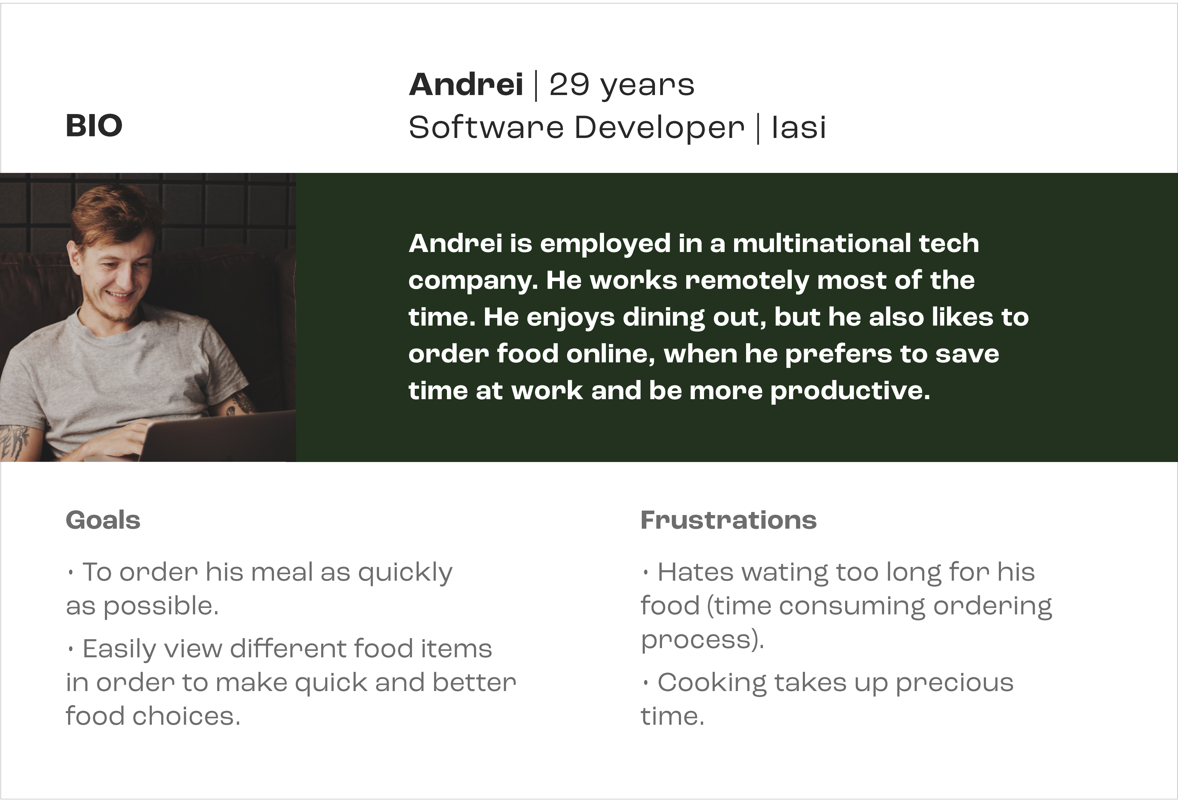 User Persona. Defining the user persona helps me better understand the target group and address its needs.